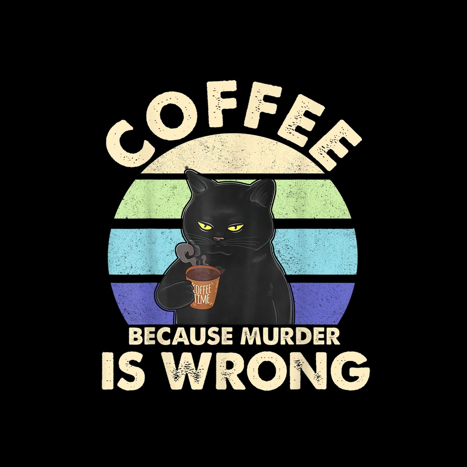 Coffee Because Murder Is Wrong Funny Cat Vintage TShirt Clothing, Shoes & Jewelry