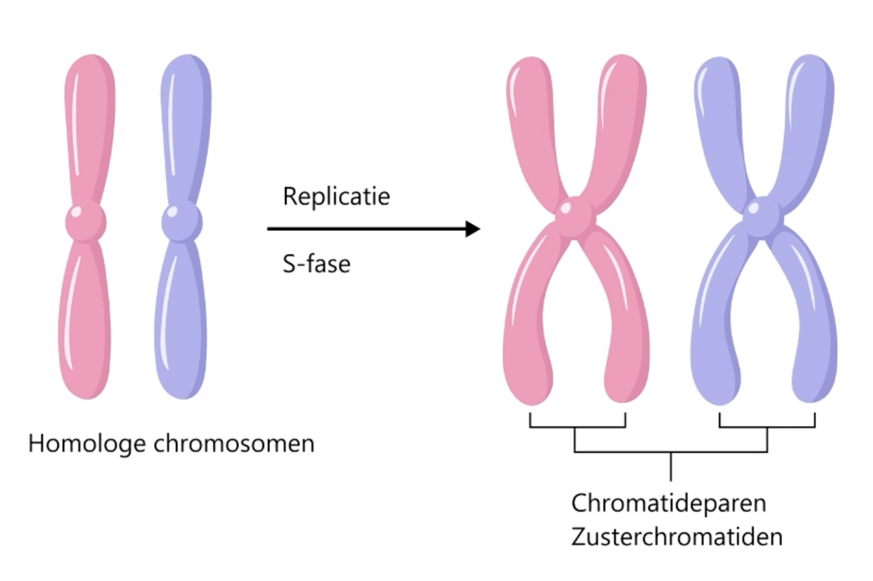 Chromosomen van een diploïde cel vormen paren, waarbij het ene chromosoom van zo'n paar afkomstig is van de ene ouder (vader) en het andere chromosoom van de andere ouder (moeder).. Gewoonlijk heeft een mens 46 chromosomen (23 paar) per cel. Bij de celdeling verdubbelt ieder chromosoom zich en bestaat dan tijdelijk uit twee identieke.