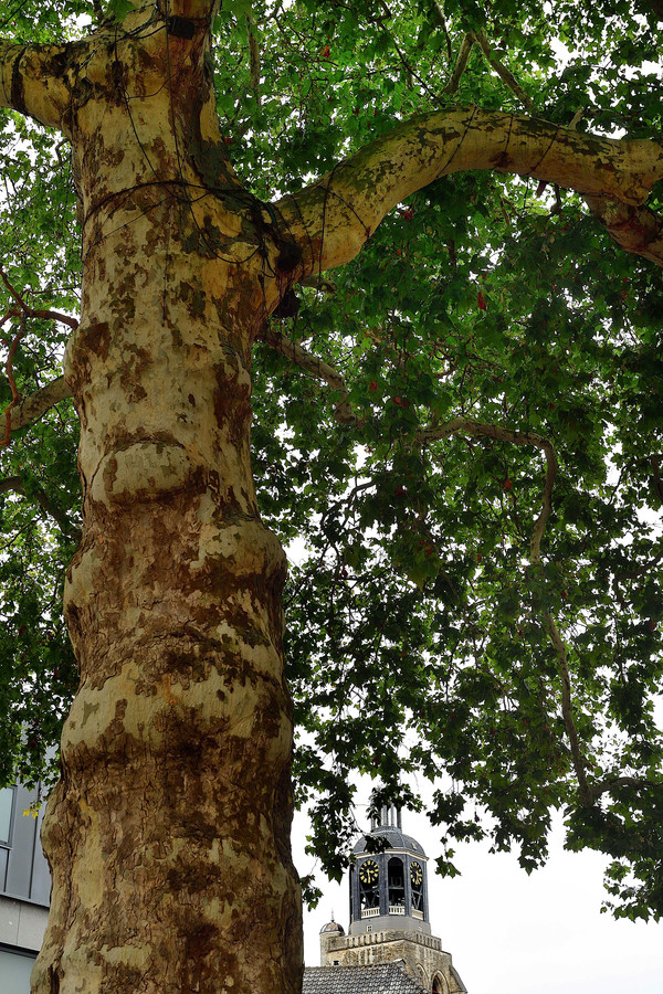 Bergse dikke boom eindelijk verlost van verstikkende verlichting Foto AD.nl
