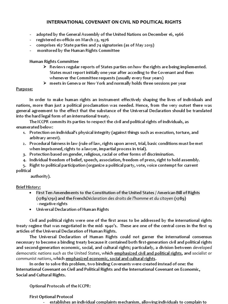 International covenant of Civil and Political Rights ICCPR Human rights Law lecture YouTube