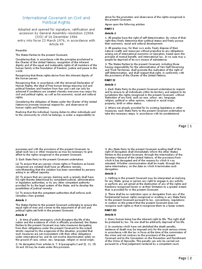 International Covenant On Civil and Political Rights PDF Natural And Legal Rights Capital