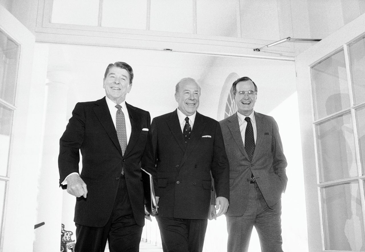 De Republikein Shultz was in de periode 1982-1989 de invloedrijke buitenlandminister onder president Ronald Reagan. De voormalige Amerikaanse minister van Buitenlandse Zaken George P. Shultz is op.