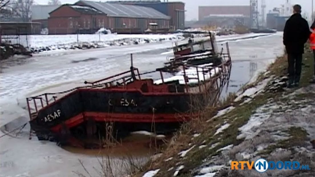 Vrachtschip gezonken in Hoogezand RTV Noord