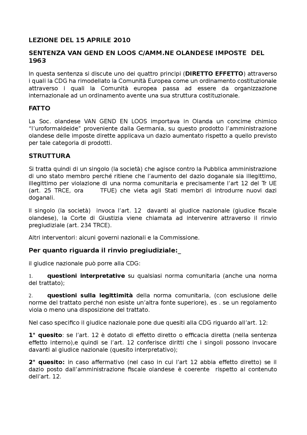 SPIEGAZIONE sentenza van gend en loos Appunti di Diritto dell'Unione Europea Docsity