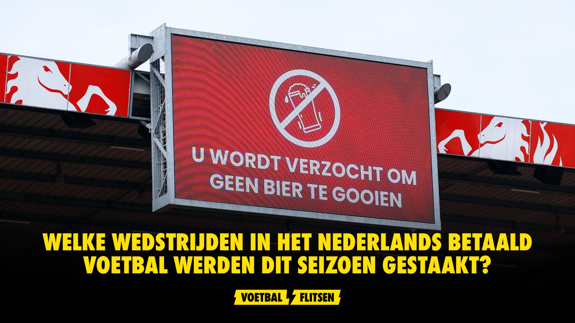 Welke wedstrijden in het Nederlands betaald voetbal werden dit seizoen allemaal gestaakt?